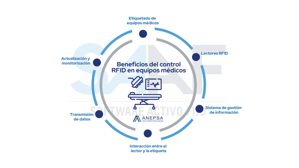 El control RFID en equipos médicos opera mediante la integración de etiquetas electrónicas o tags RFID en cada dispositivo médico, estas etiquetas contienen un chip que almacena información relevante, como el número de serie, la fecha de adquisición, los detalles de mantenimiento y cualquier otro dato pertinente.